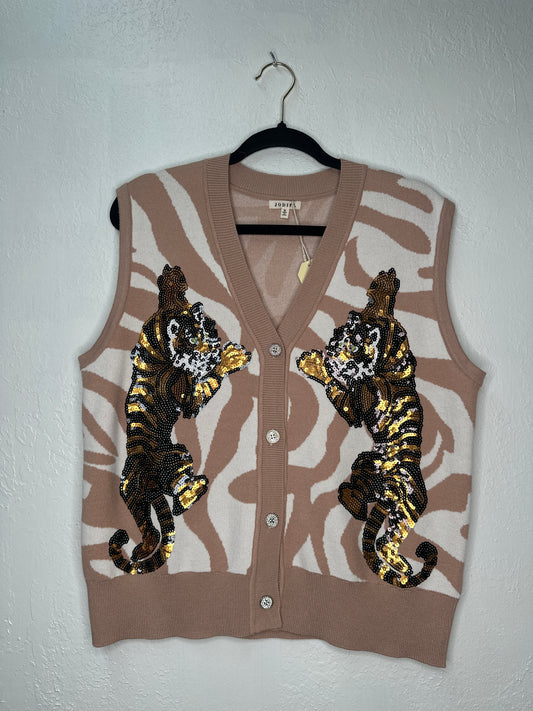 Sequins Tiger Detail Leopard Sweater Vest