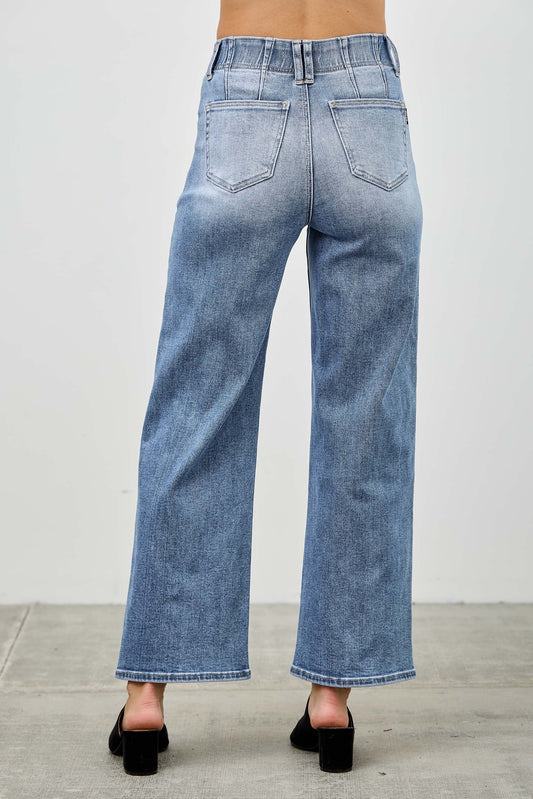 HIGH RISE CROP DOUBLE BUTTON JEANS