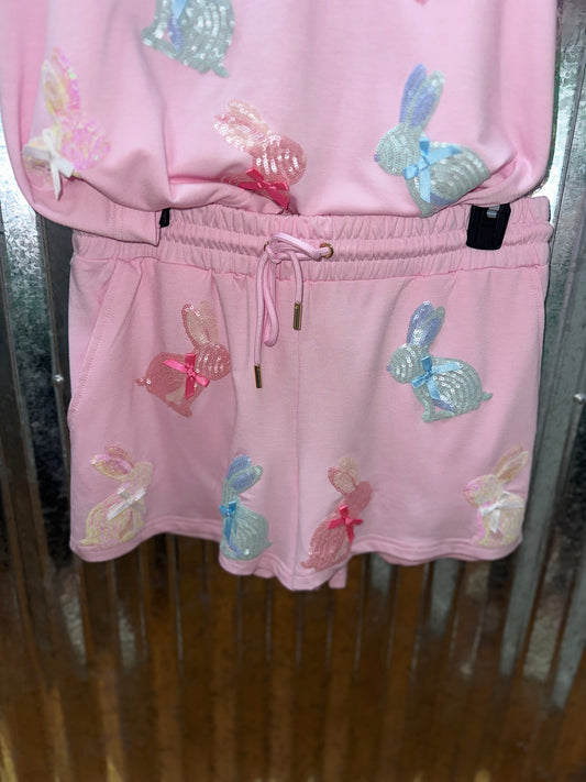 Sequin Bow Bunnies Pink Short Set