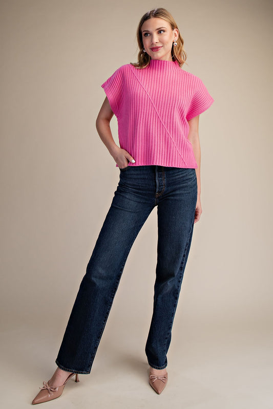 Ribbed Knit Vest Sweater, Pink