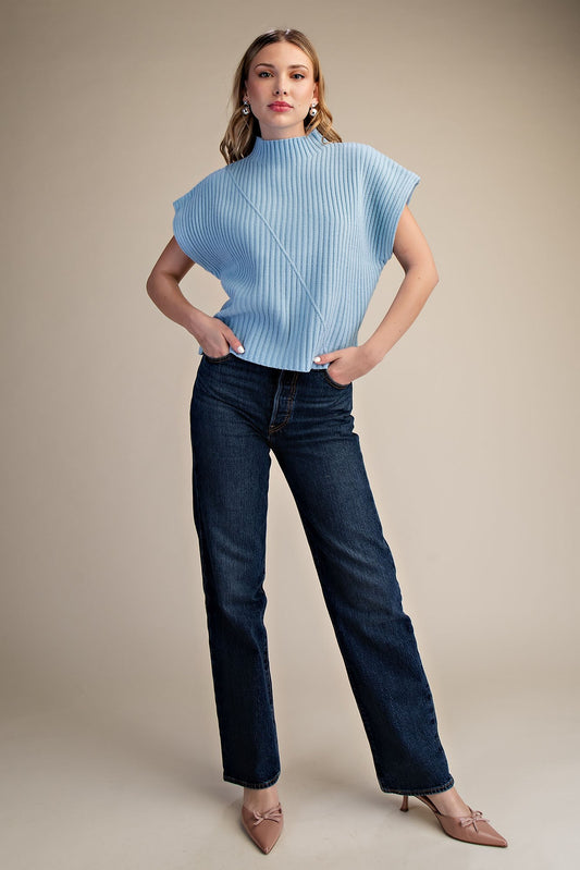 Ribbed Knit Vest Sweater, Blue