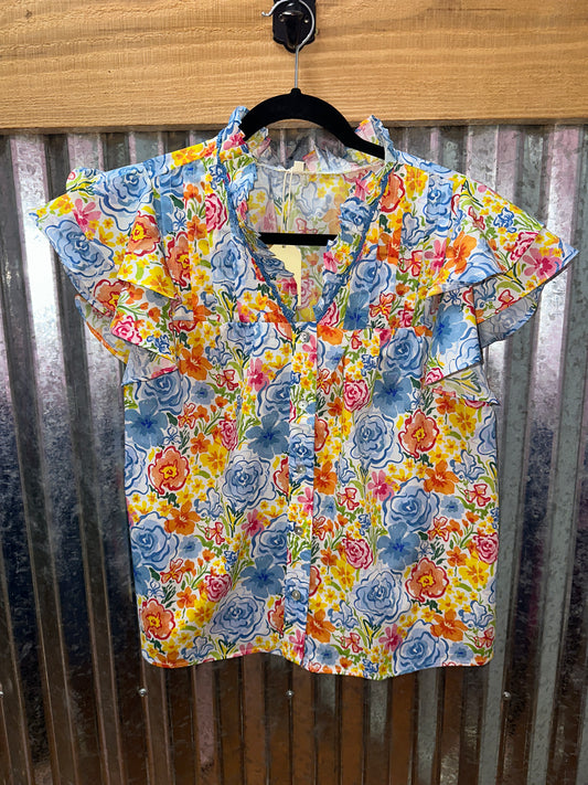 Blue Mix Flutter Sleeve Top