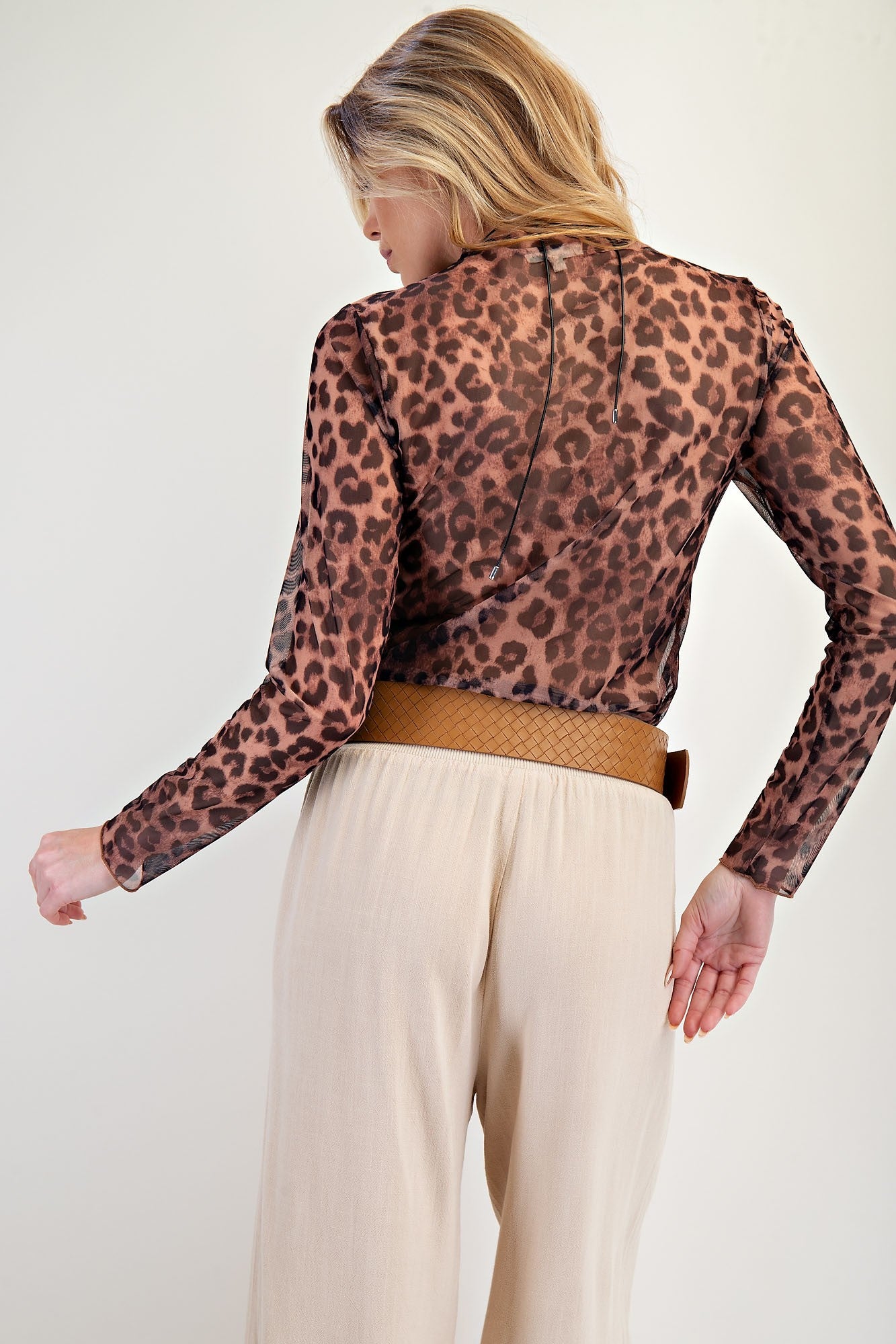 LONG SLEEVE ANIMAL PRINTED MESH FIT