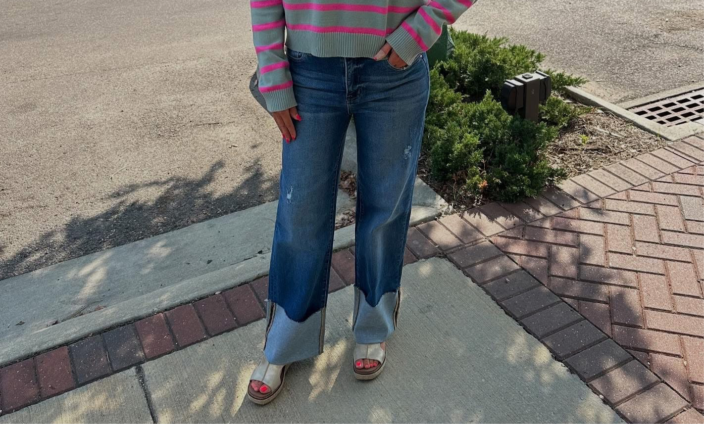 ANKLE WIDE-CUFFED JEANS
