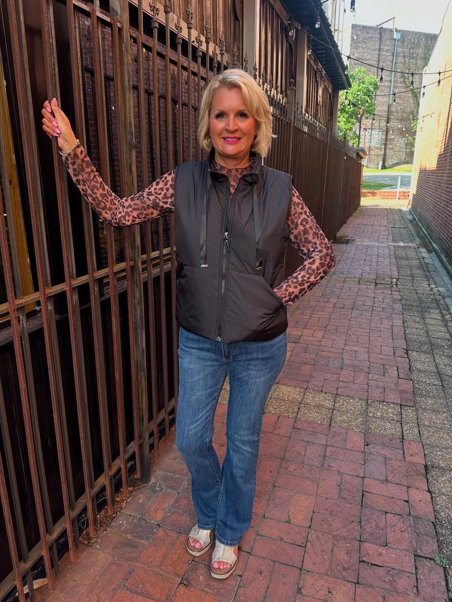 Black Front zip up puffer vest w/drawstring high neck, side pockets