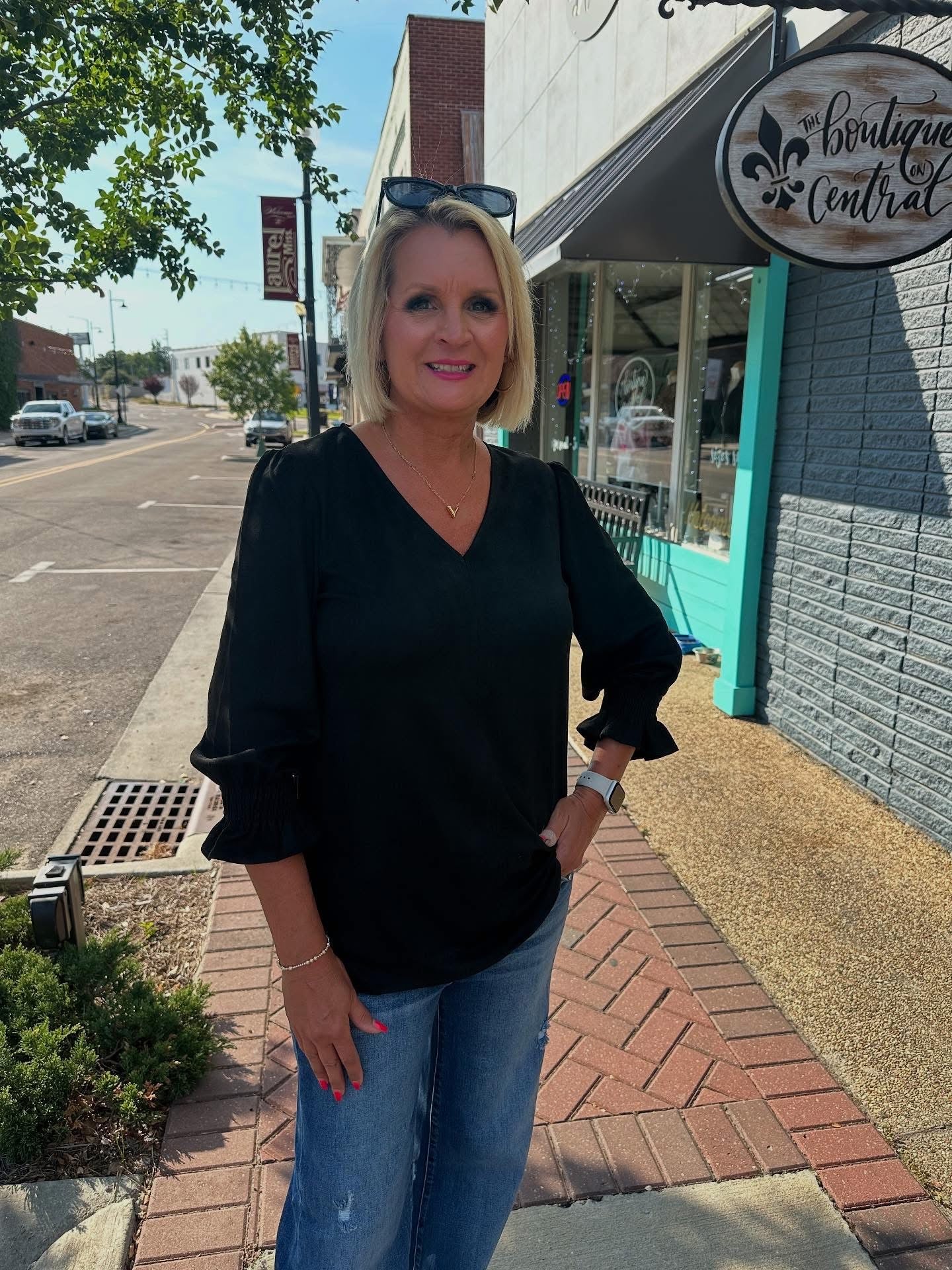 BLACK ELIZABETH SMOCKED BELL SLEEVE TOP