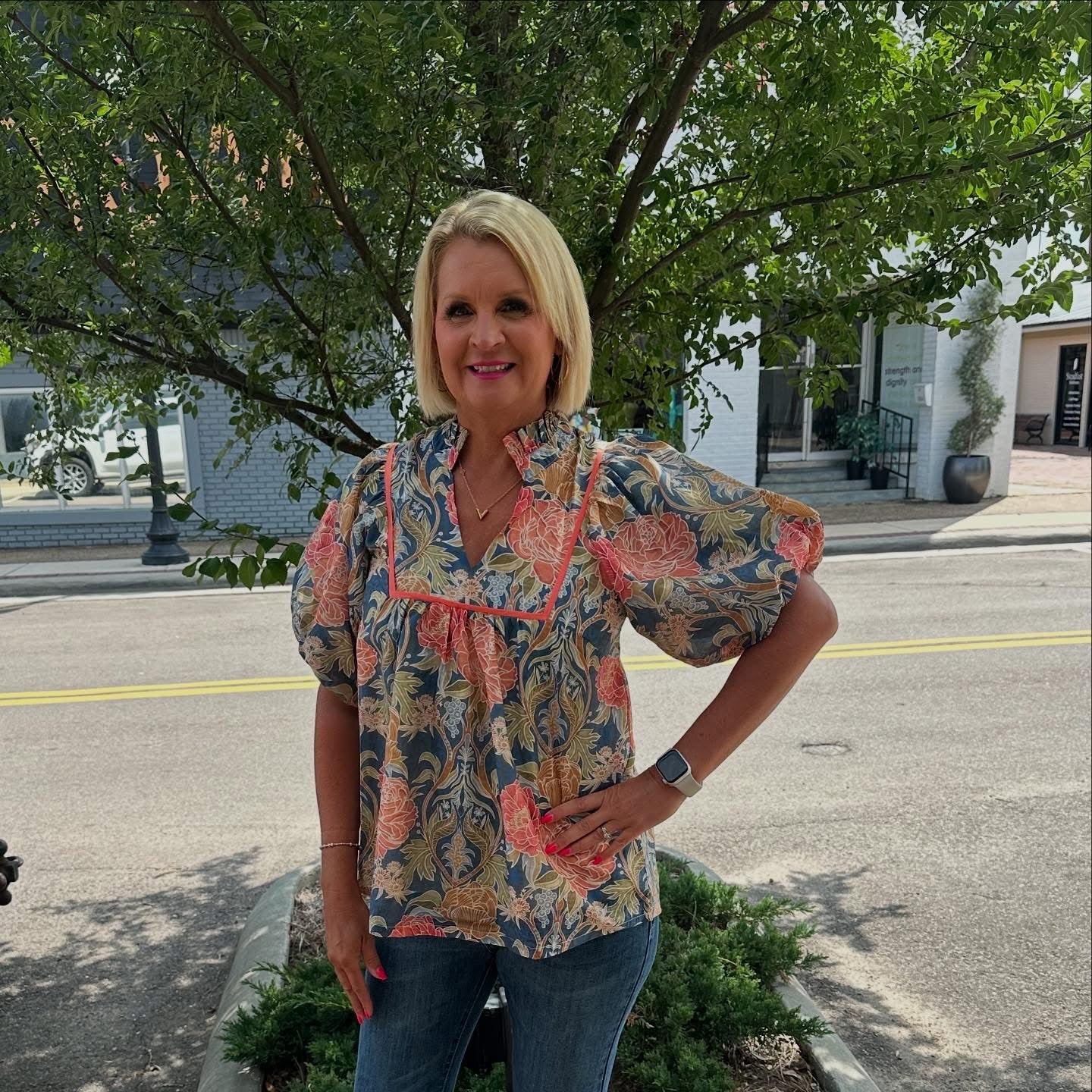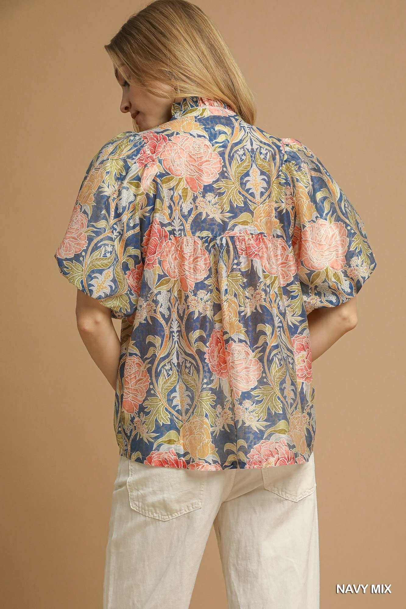 Floral Puff Sleeve Peasant Blouse