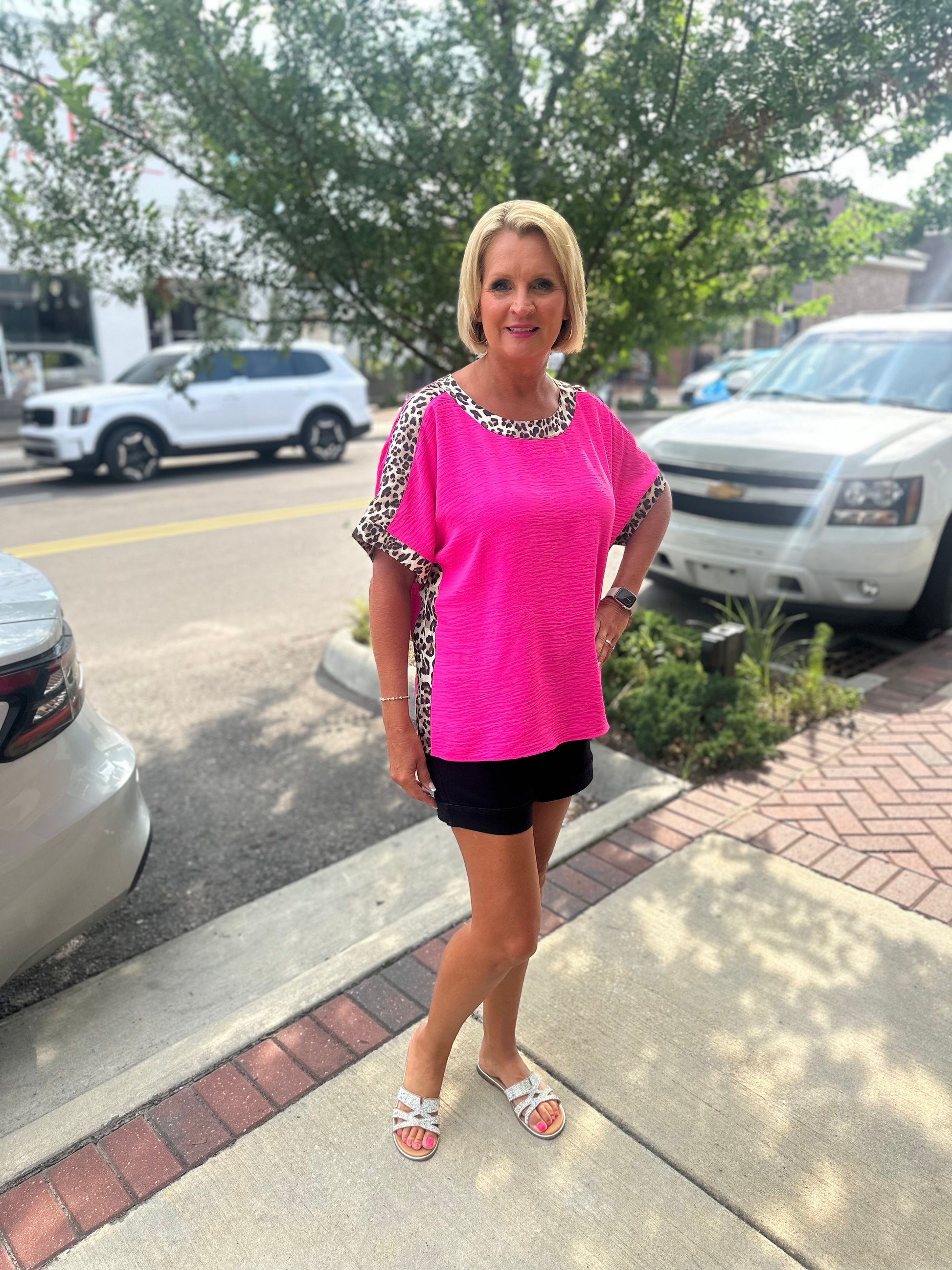 Hot Pink Leopard Trim Top