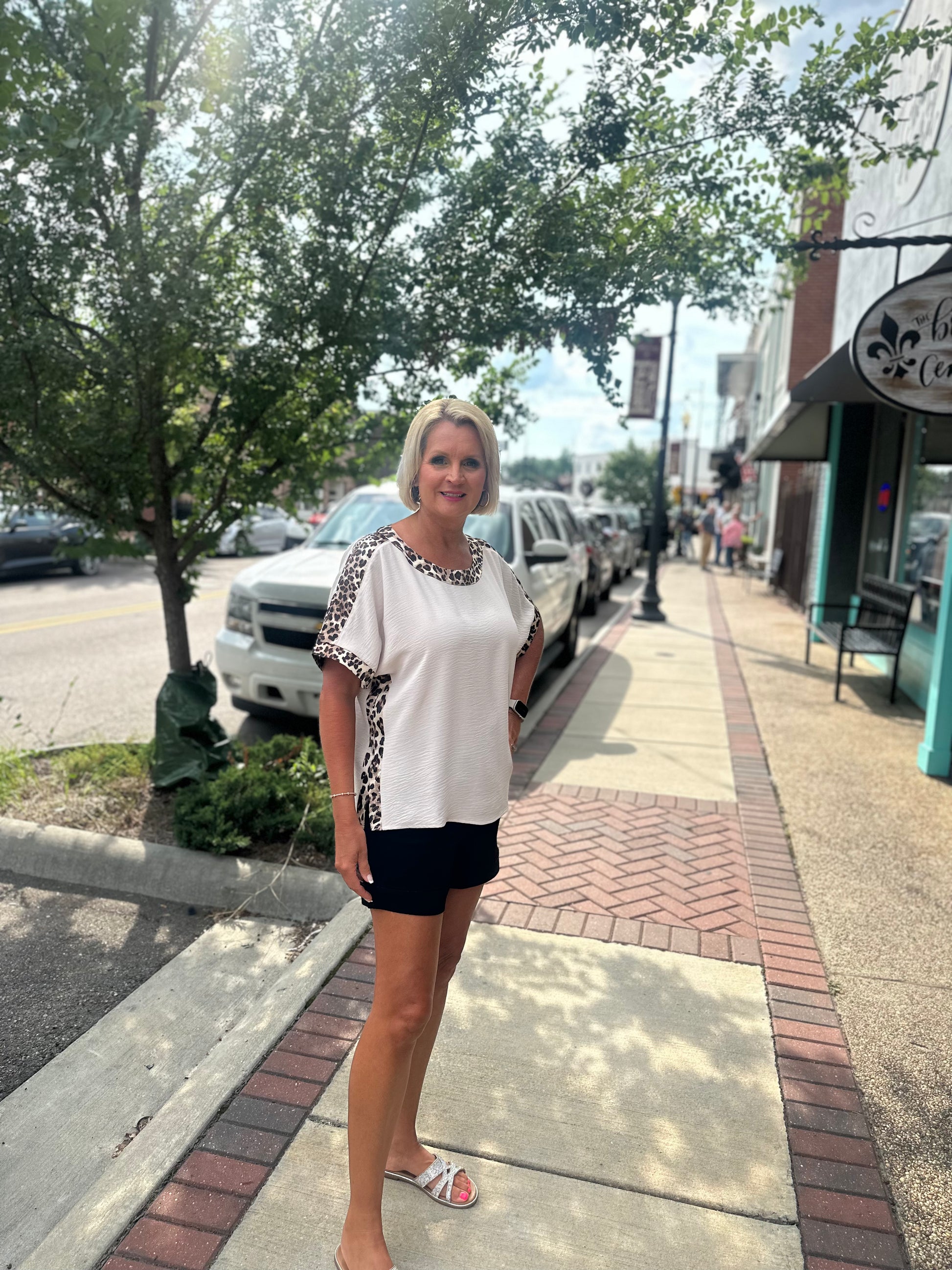 Oatmeal Leopard Trim Top