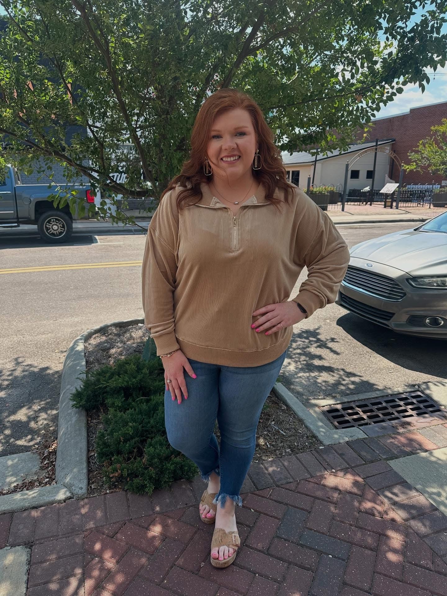 • Half-zip front with collar